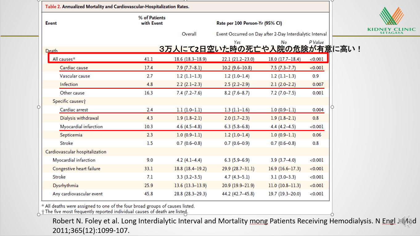 2)Robert N. Foley et al. Long Interdialytic Interval and Mortality among Patients Receiving Hemodialysis. N Engl J Med 2011;365(12):1099-107.