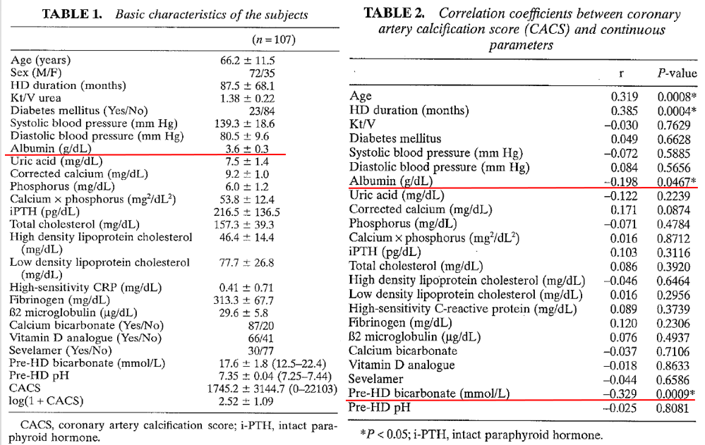 3)M Oka, T Ohtake, Y Mochida, et al. Correlation of coronary artery calcification with pre-hemodialysis bicarbonate levels in patients on hemodialysis. Ther Apher Dial 2012;16(3):267-71.