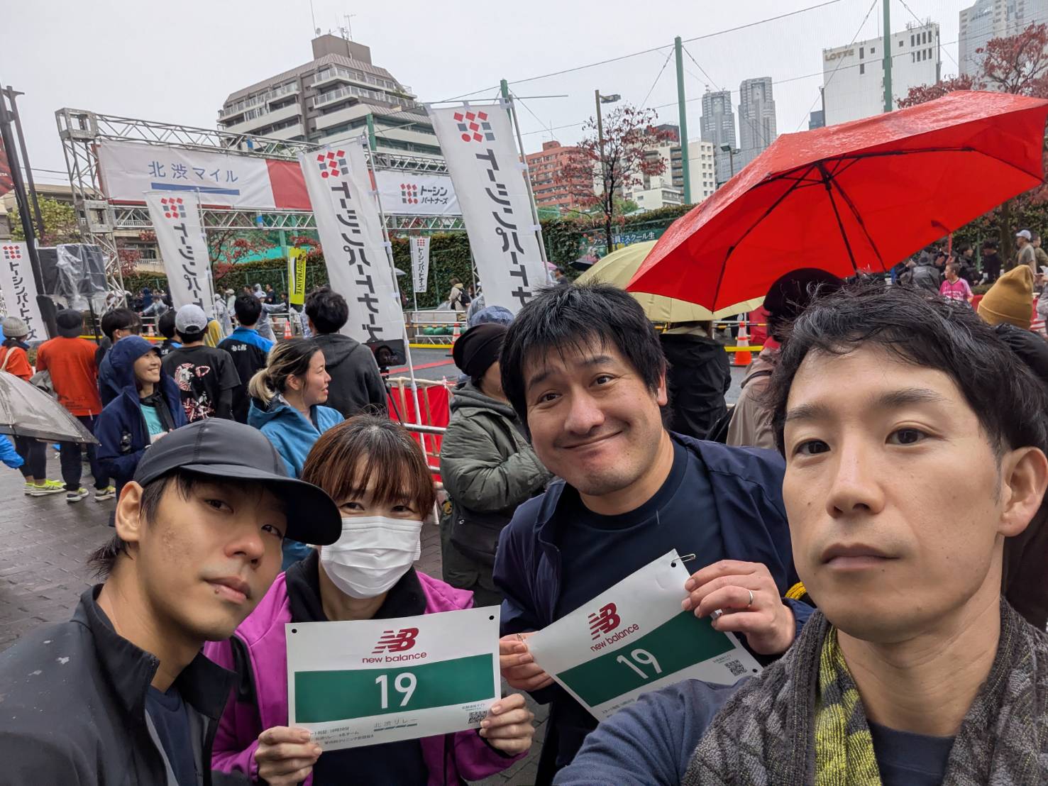 当日は冷たい秋雨の中、地域のランナーや企業チームが多数参加しており、終始明るく活気のある雰囲気でした。